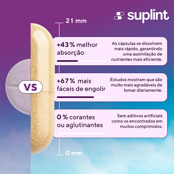 Todos os nossos produtos são projetados para uma absorção ideal. Recomendamos tomar as cápsulas com alimentos.