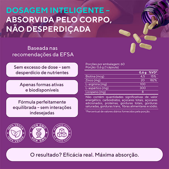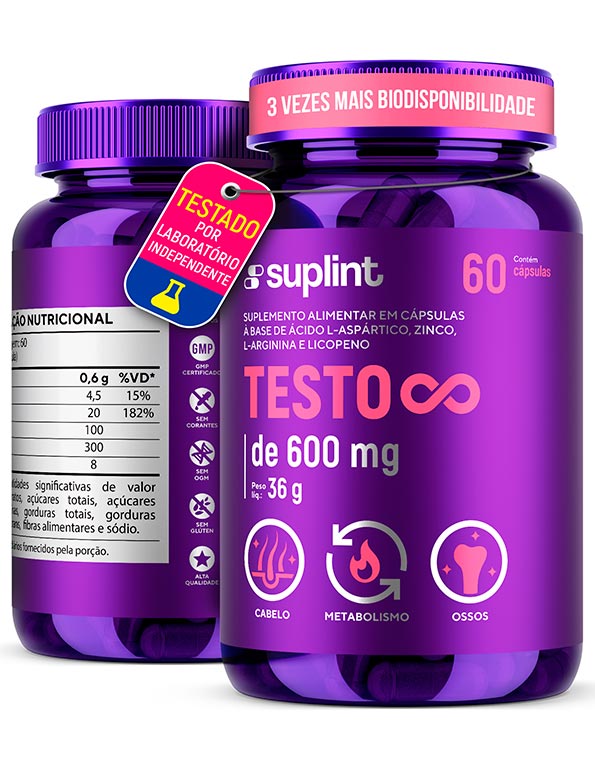 - Forma biodisponível de ácido aspártico, feno-grego e L-arginina